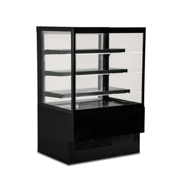 מקרר ויטרינה מרובע לתצוגת עוגות , כריכים ומנות אחרונות . יחידת קירור פנימית